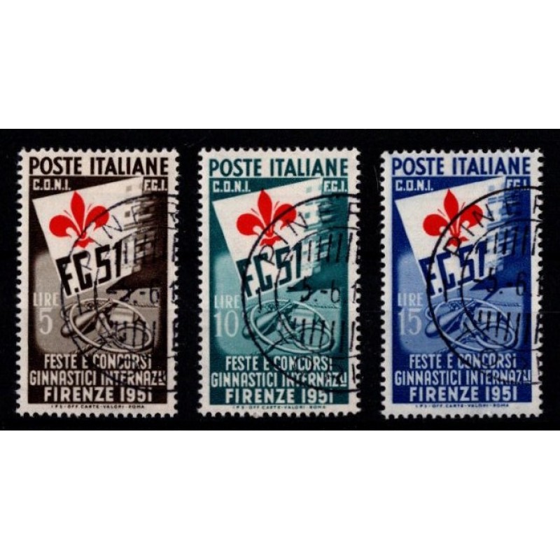 1951 - Italien - AFA 754-56 - Frimærke - International gymnastikkonkurrence i Firenze - Komplet sæt - Stemplet.