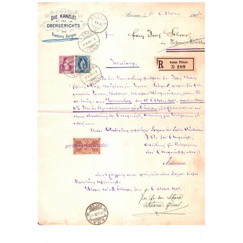 Incl. Stævning og brev fra advokat. Begge med stemplede frimærker.