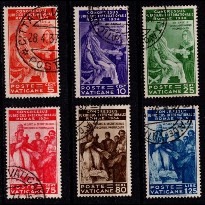 1935 - Vatikanet - AFA 70-75 - Frimærke - International juristkongres i Rom 1934 - Komplet sæt - Stemplet.