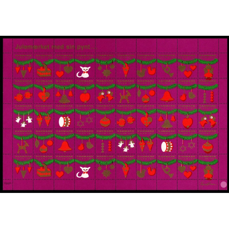 1977 - Danmark - Julemærker - Helark - Julemærker med sin pynt - 4-sidet takket - Ufoldet.