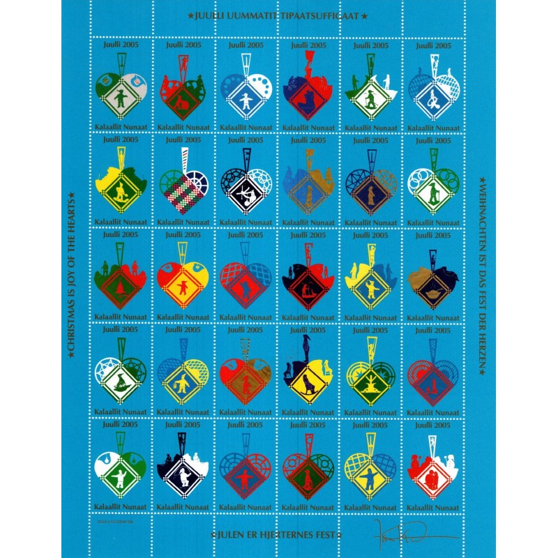 2005 - Grønland - Julemærkeark - 2-sidet takket - Ufoldet - "Hjerternes fest".