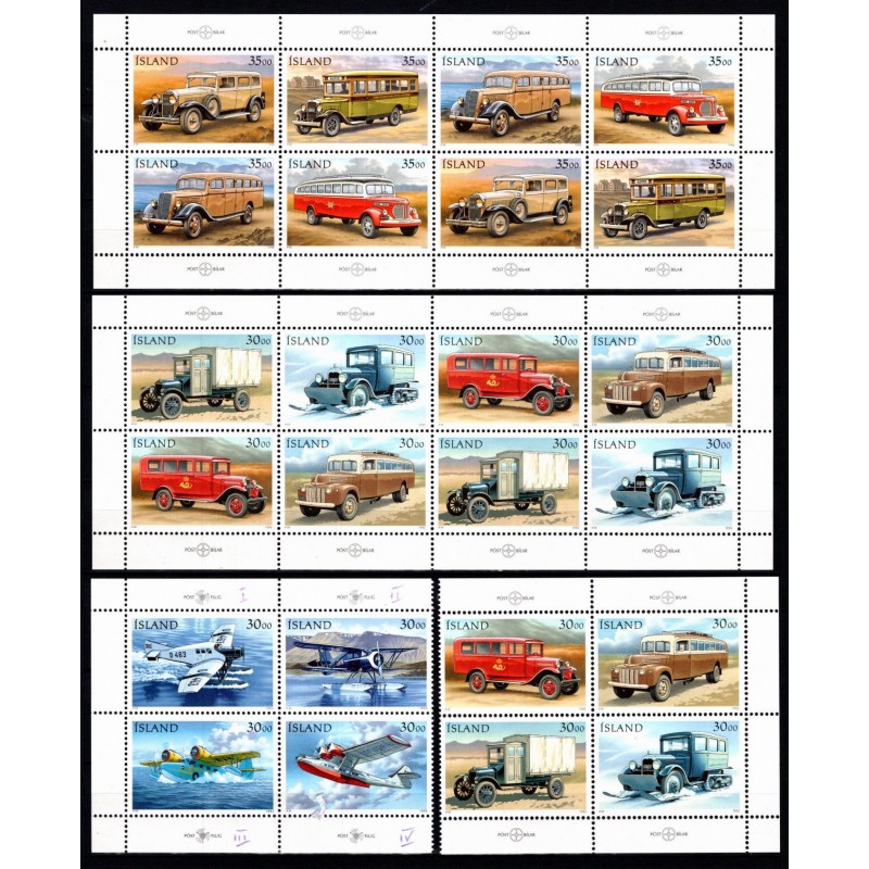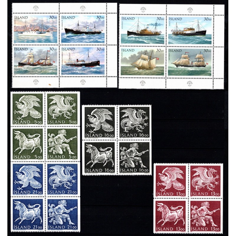 Island. Skibe, Postbiler og skytsånder. Fireblok sammensammentryk og miniark. Postfrisk.