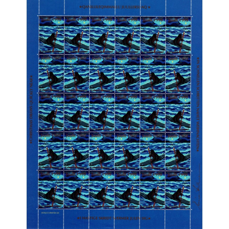 1999 - Grønland - julemærkeark - 2-sidet takket - Ufoldet - "I hastige skridt...".