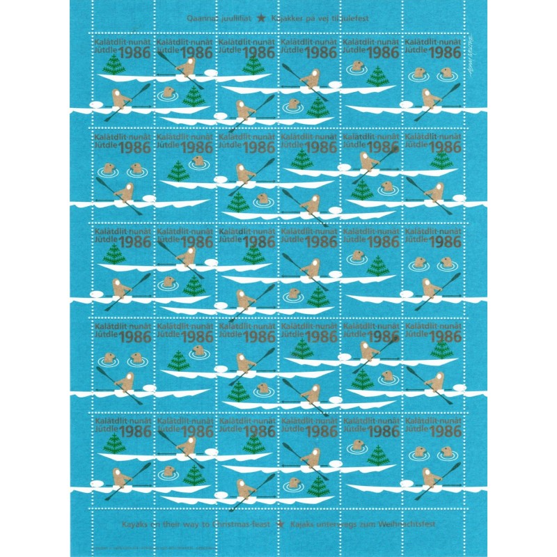 1986 - Grønland - Julemærkeark - 2-sidet takket - Ufoldet - "Den Grønlandske kajak".