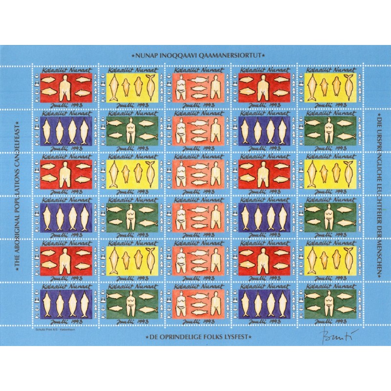 1993 - Grønland - Julemærkeark - 2-sidet takket - Ufoldet - "De oprindelige folks lysfest".