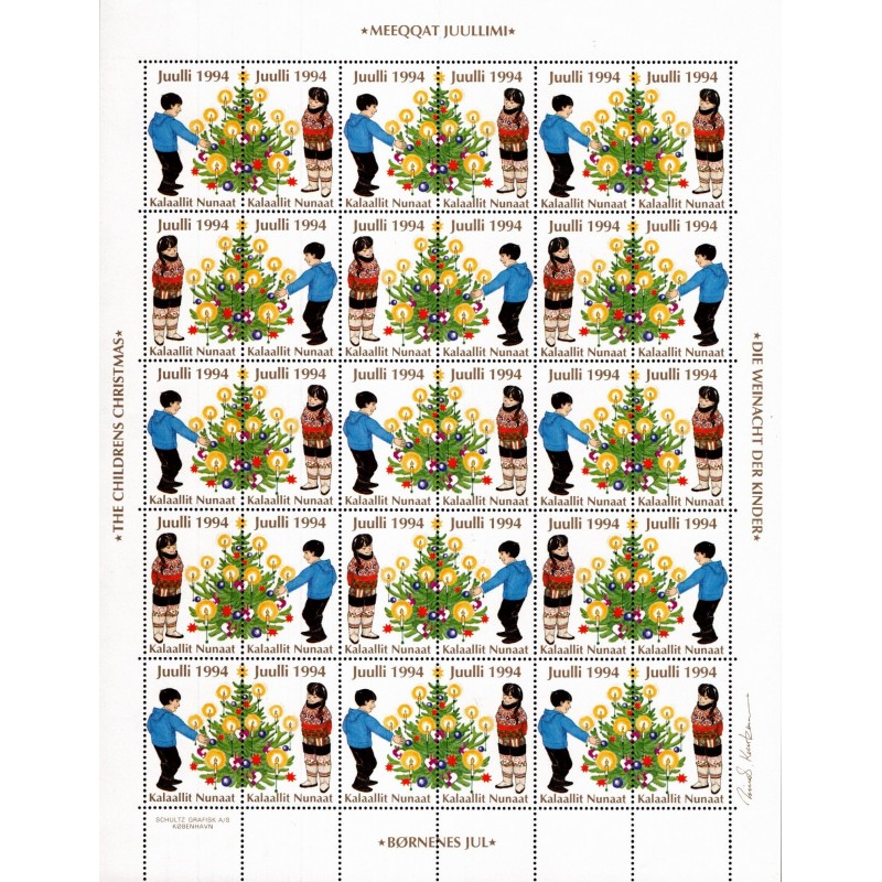 1994 - Grønland - Julemærkeark - 1-sidet takket - Ufoldet - "Børnenes jul".