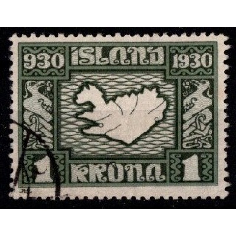 1930 - Island - AFA 136 - 1 kr. grågrøn - Frimærke - Altingets 1000-års jubilæum - Stemplet.