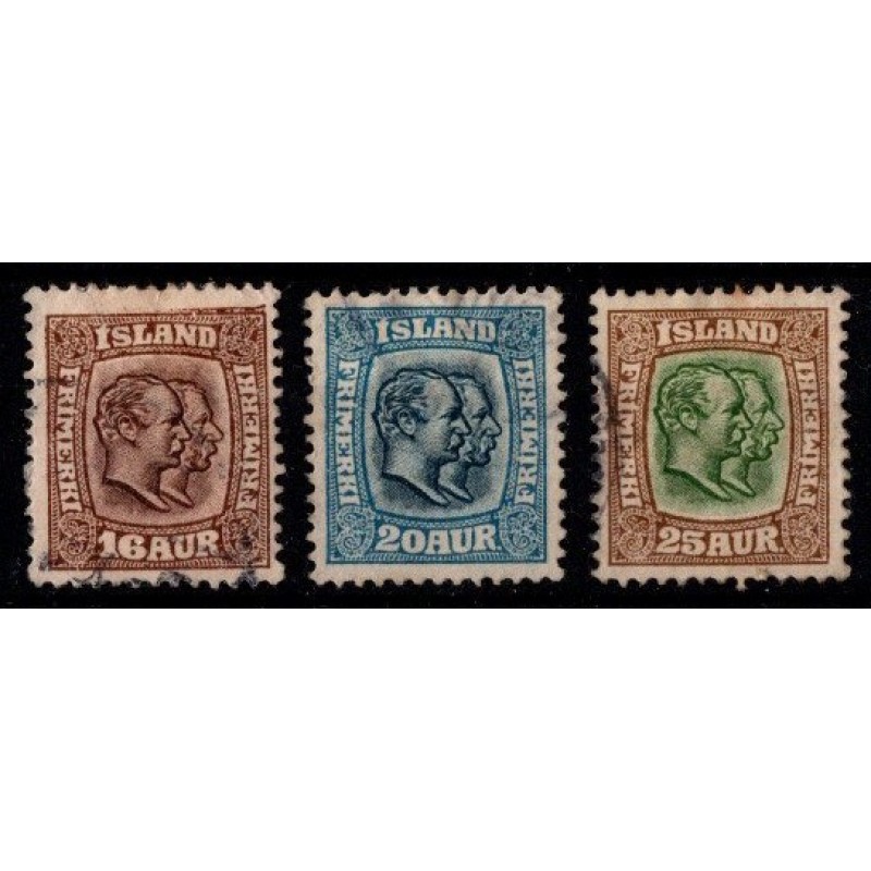 Island - kongerne Christian X og Frederik VIII - 3 enkeltmærker - Stemplet.
